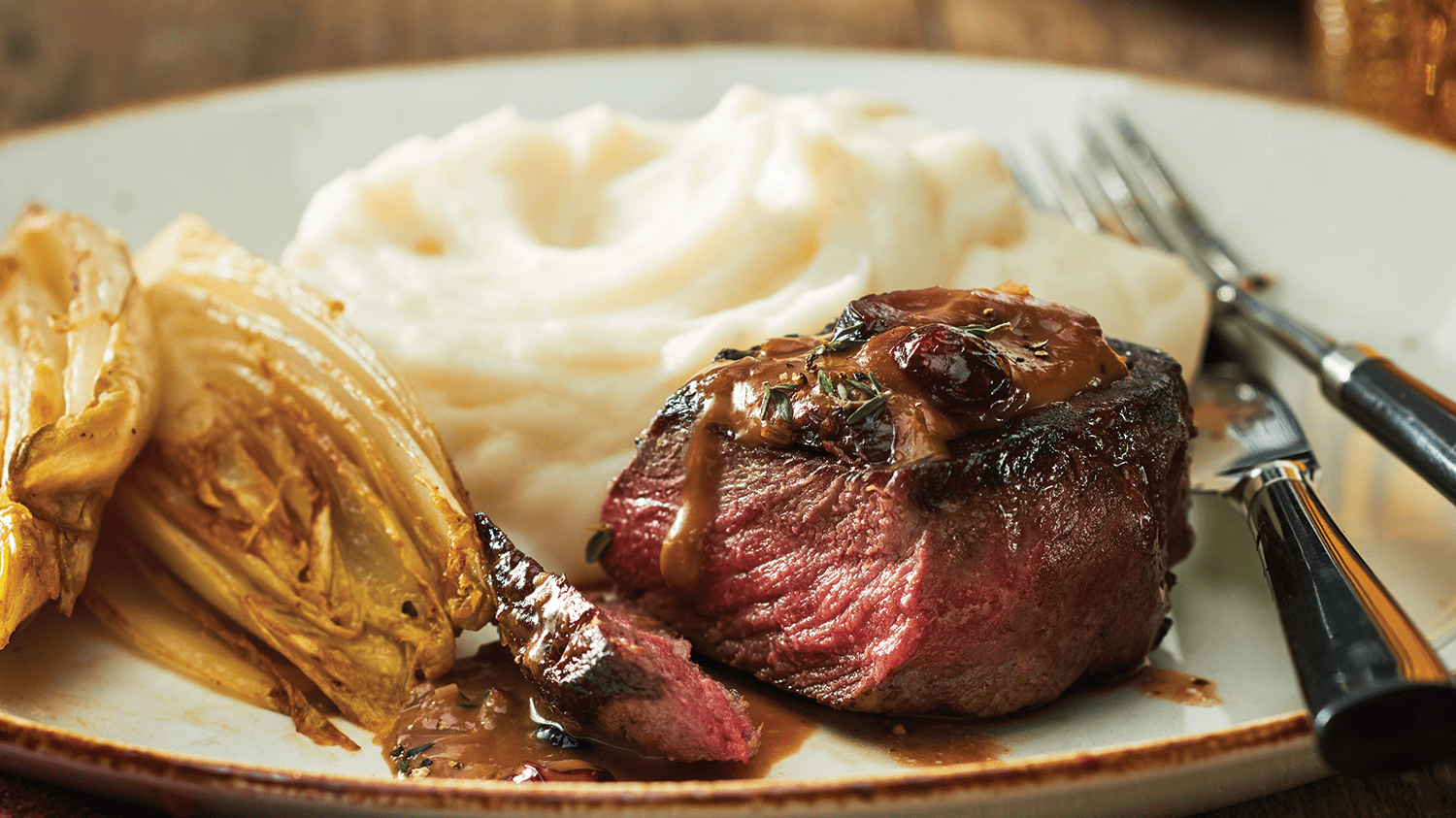 Serve medallions with skillet gravy. For side dishes, serve mashed potatoes and hot vegetables, such as braised endive.