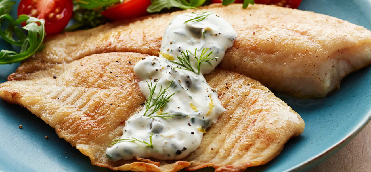 Cut the fish into 4 individual portions (if necessary). Season evenly with salt and pepper. Lightly coat each piece of fish in flour, shaking off excess.