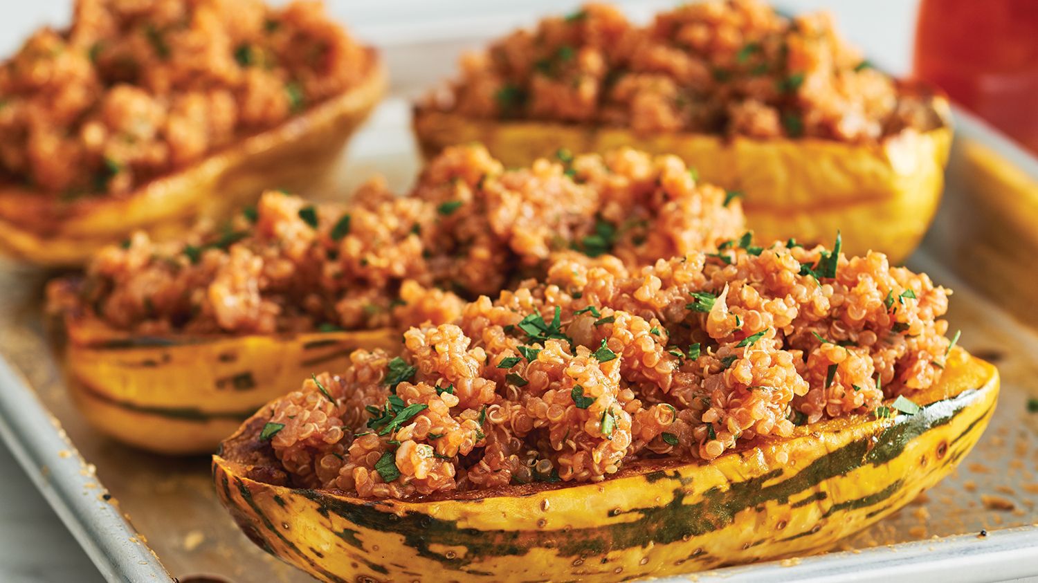Divide quinoa mixture into squash cavities. Bake about 10 min. to heat through. Sprinkle with extra parsley to serve.